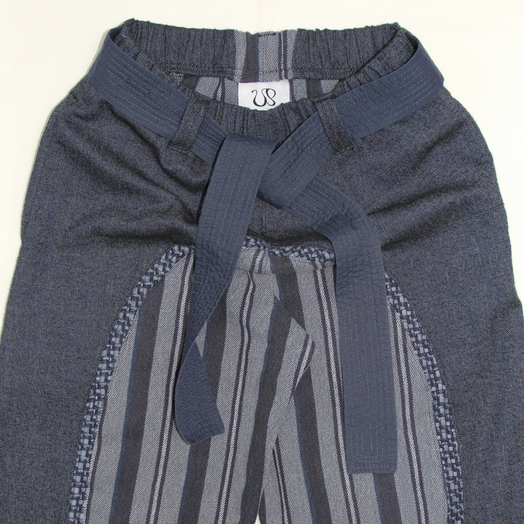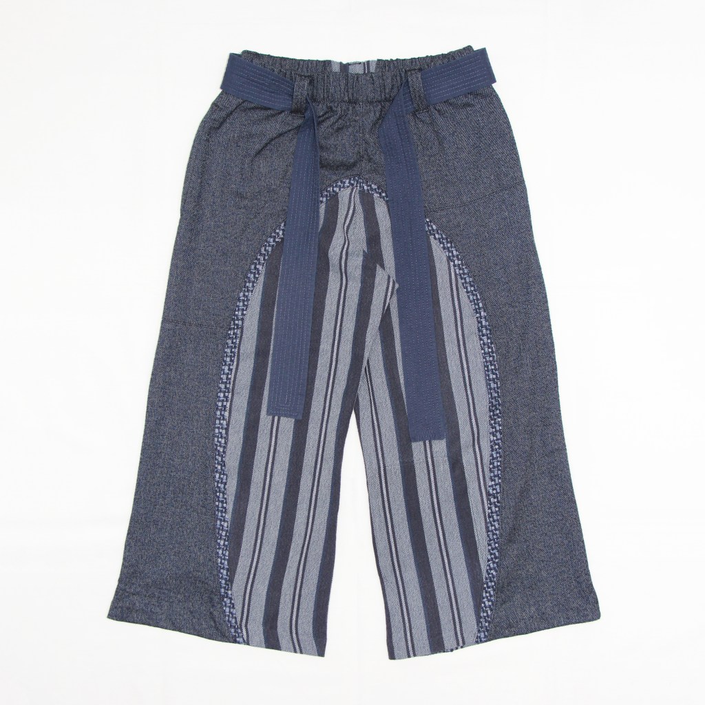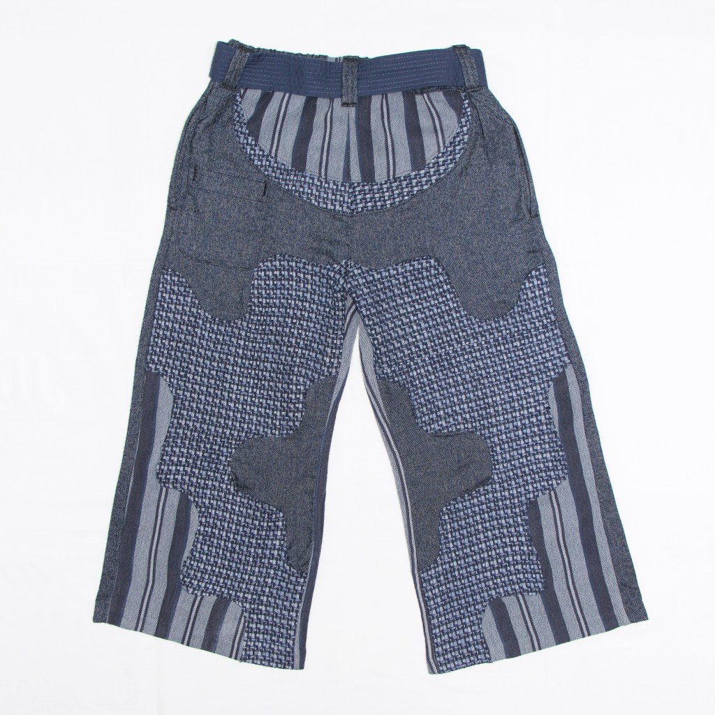 Reworked thrifted mid-heavyweight shirting fabrics re-imagined as patchwork balloon trousers.