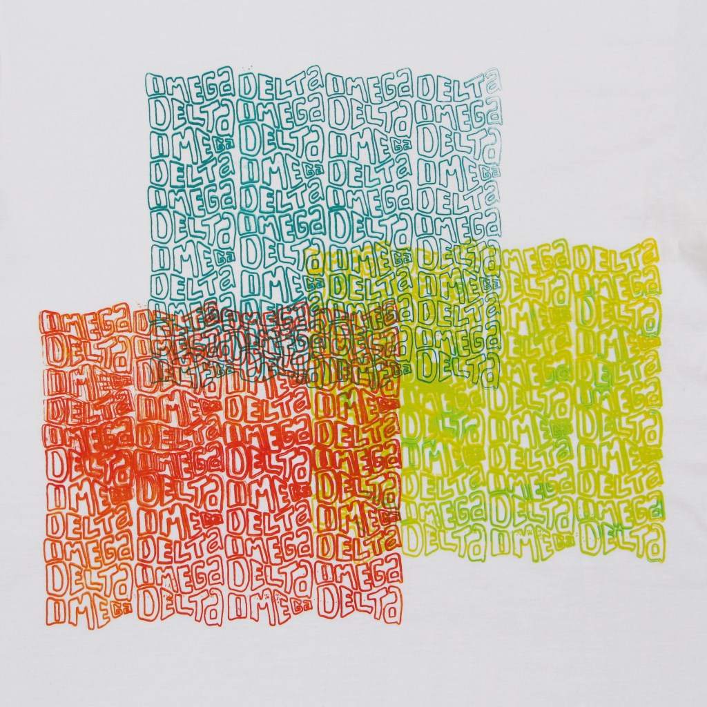 The main graphic is a warped wavy spell-out of our brandname Omega Delta.
