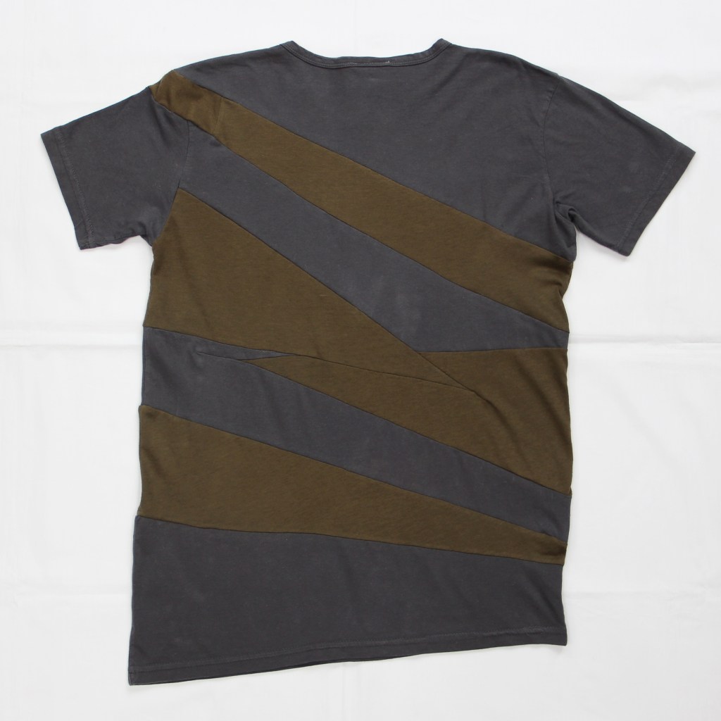 Two tees calculatedly patchworked into one, so both graphics are centralised. Mixed print and embroidery on front.as slightly oversized boxy tee.