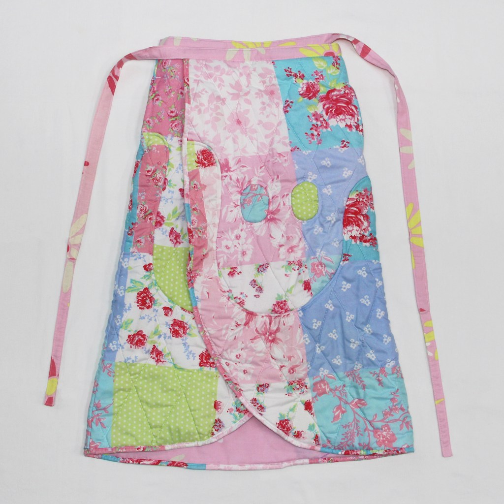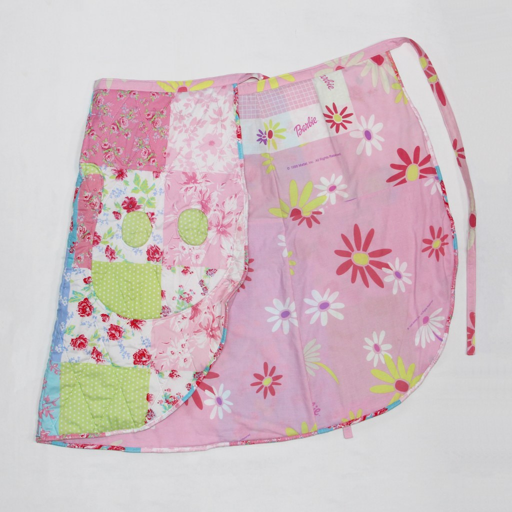 Upcycled from a winter quilt and barbie bedsheets this piece is the comfiest skirt around.