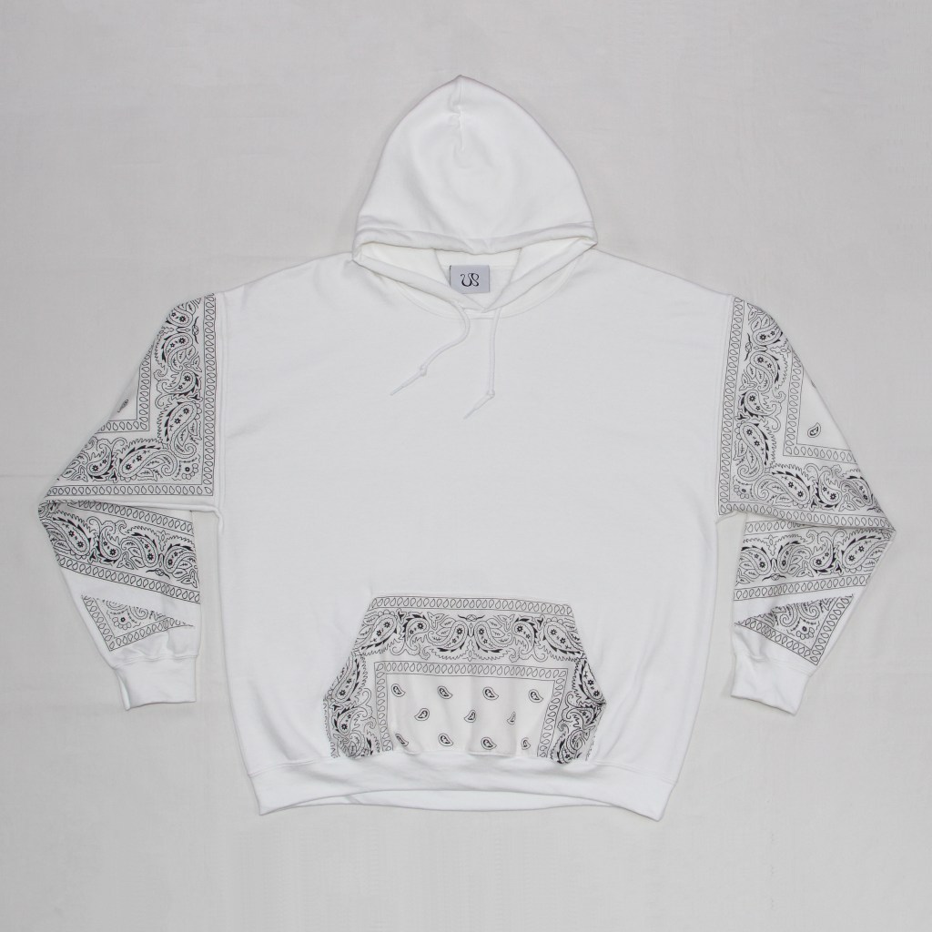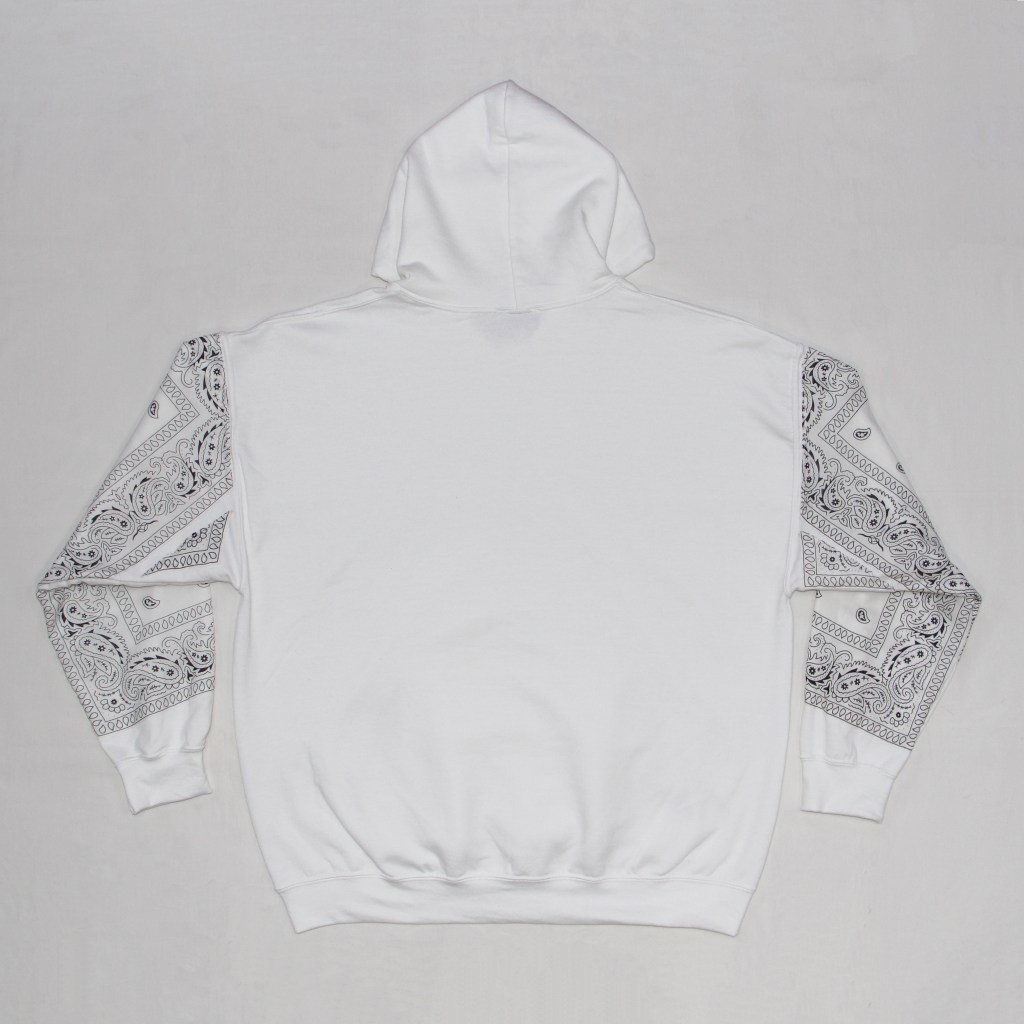 Bandanas sewn down onto sleeves and front kangaroo pouch.