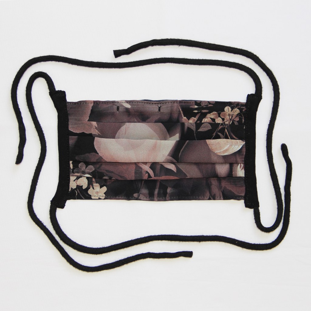 Cotton-Polyester blend printed dark floral as front with a soft breathable fabric on underside for comfort.
