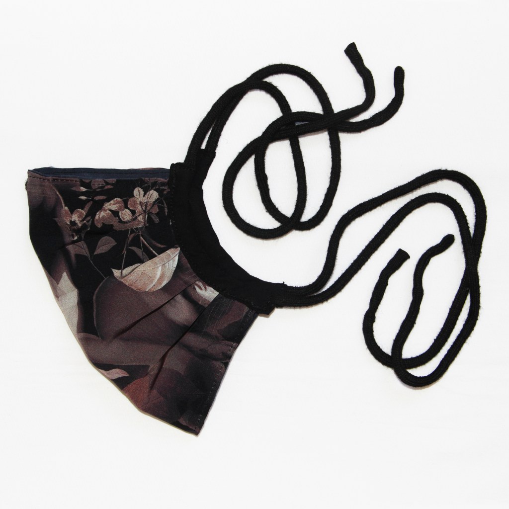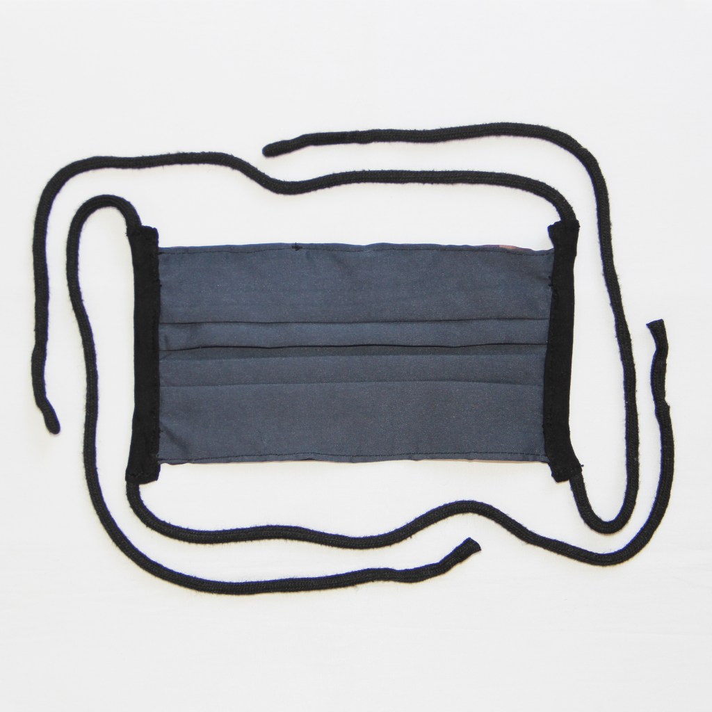 Complementary colour and aesthetic drawcord to use as the wearer desires. Either tie the sides cords together and use as ear loops or tie the tops together (and bottoms together) behind the neck and top of the head.
