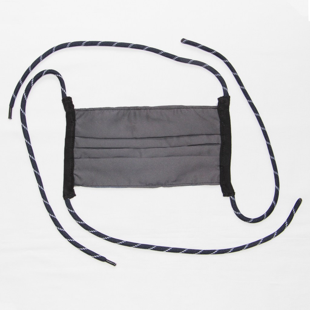 Complementary colour and aesthetic drawcord to use as the wearer desires. Either tie the sides cords together and use as ear loops or tie the tops together (and bottoms together) behind the neck and top of the head.