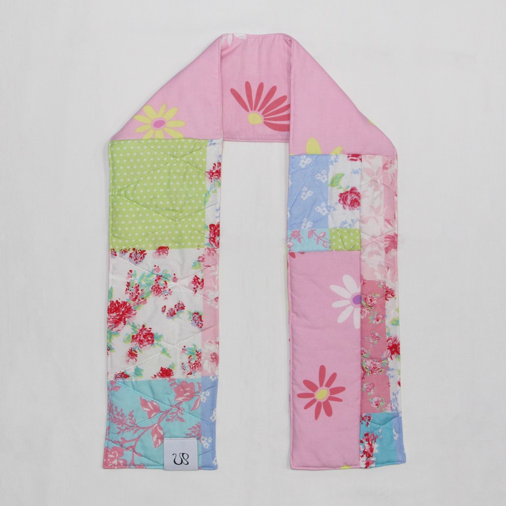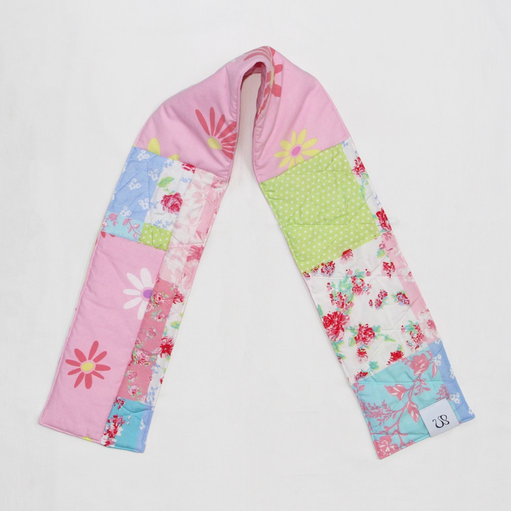 Upcycled from a winter floral quilt and barbie bedsheets.